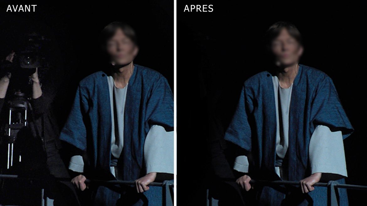 Et malheureusement, une caméra apparaissait dans le champ de la seule caméra qui pouvait filmer le comédien à ce moment là. Et oui, parce que le comédien était dans le public, et toutes les caméras ne pouvaient pas l’avoir, ou alors d’un angle qui n’était pas très intéressant.